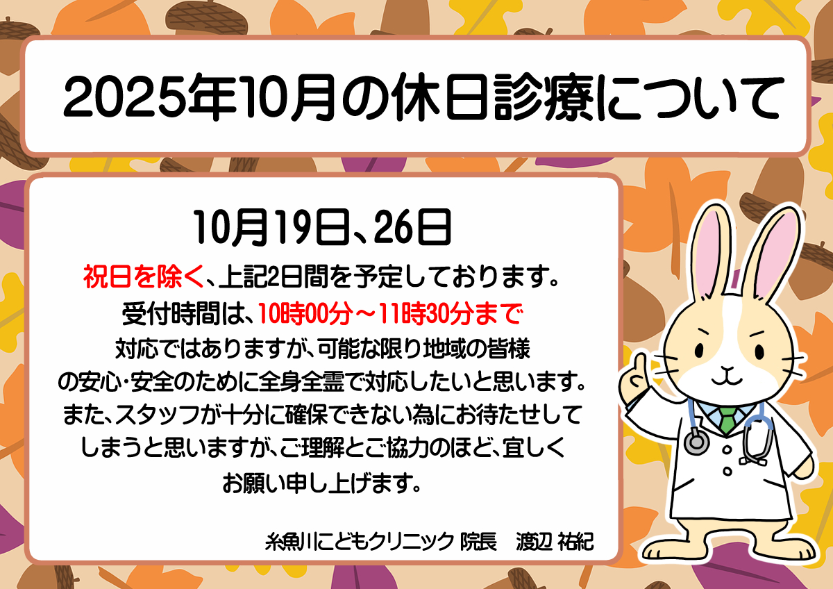 糸魚川こどもクリニックでは、当院のブログにて各種最新の情報を随時公開しておりますので、糸魚川こどもクリニックBLOGもあわせてご確認くださいます様、宜しくお願い申し上げます。